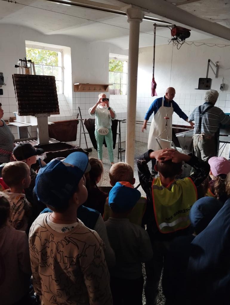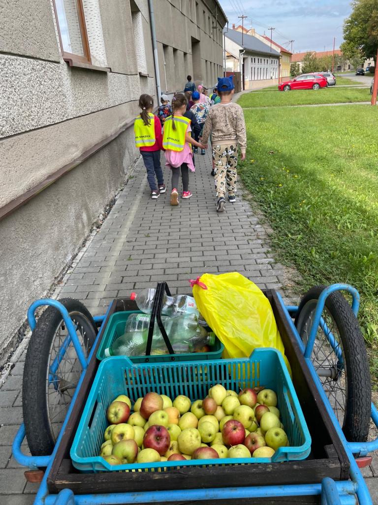 S dětmi jsme vyšli za místními zahrádkáři, kde jsme mohli vidět, jak se moštují jablíčka, co z nich zůstane, přes co se mošt cedí a hotovou vitamínovou bombu jsme si odnesli do školky na ochutnání.