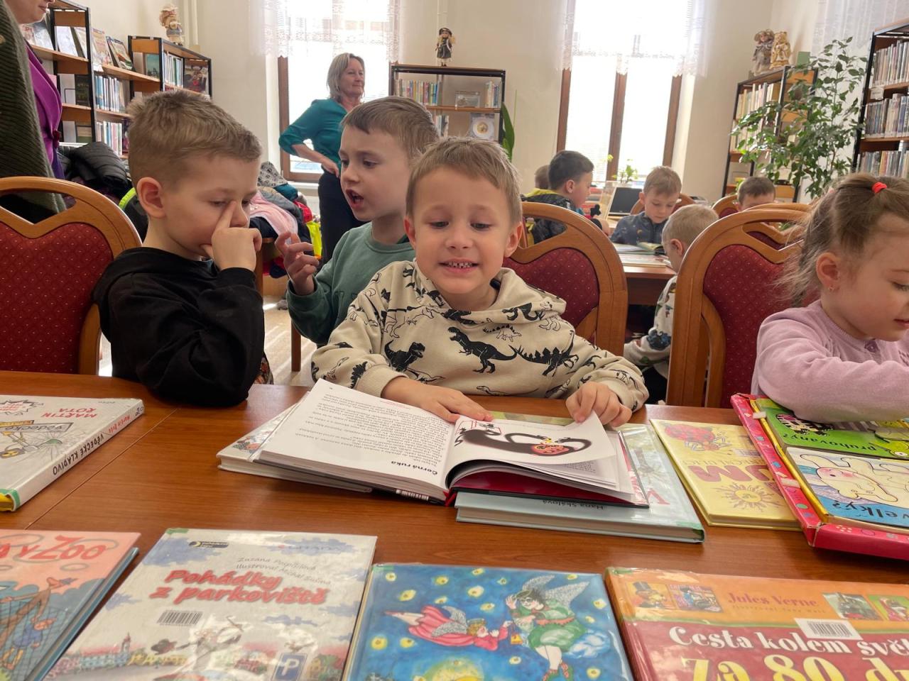 Děti ze všech tříd postupně navštívily místní knihovnu, bkde si mohly prohlédnout nejrůznější knihy.