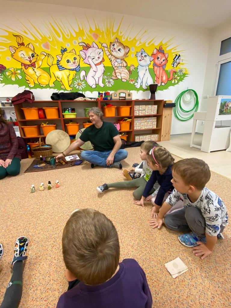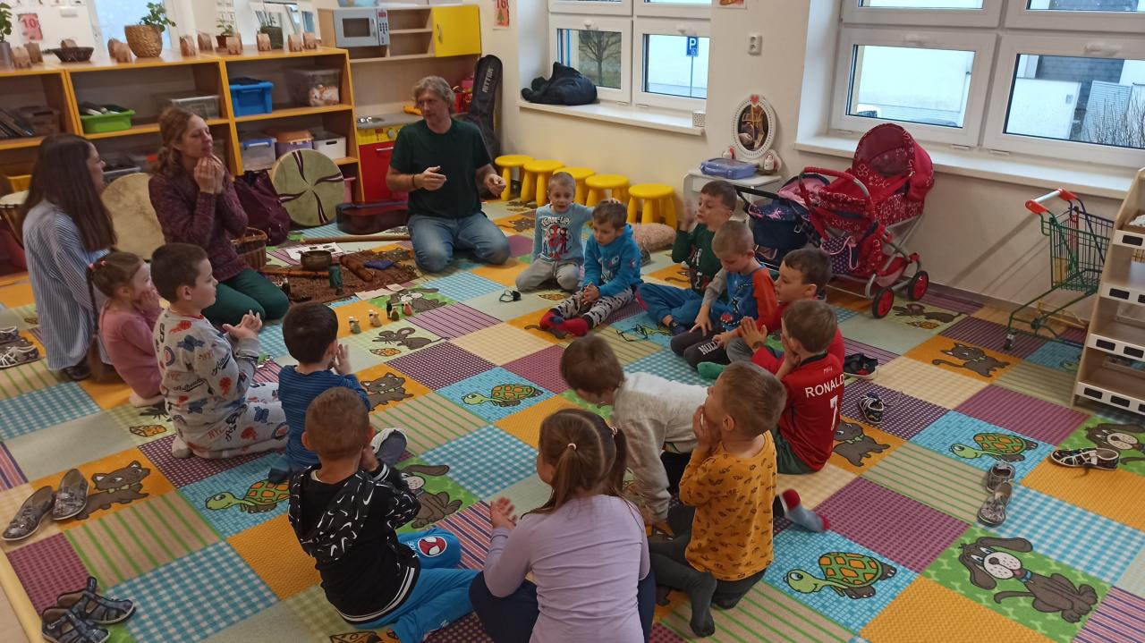 Za dětmi opět přijeli manželé Pokorni, kteří měli pro děti nachystaný program voňavé hádanky - děti poznavaly vůně mandarinky, máty, borovice a hřebíčku. Vše bylo proloženo i hrou na netradiční hudební nástroje a nakonec si děti udělaly masáž obličeje mandlovým olejem.